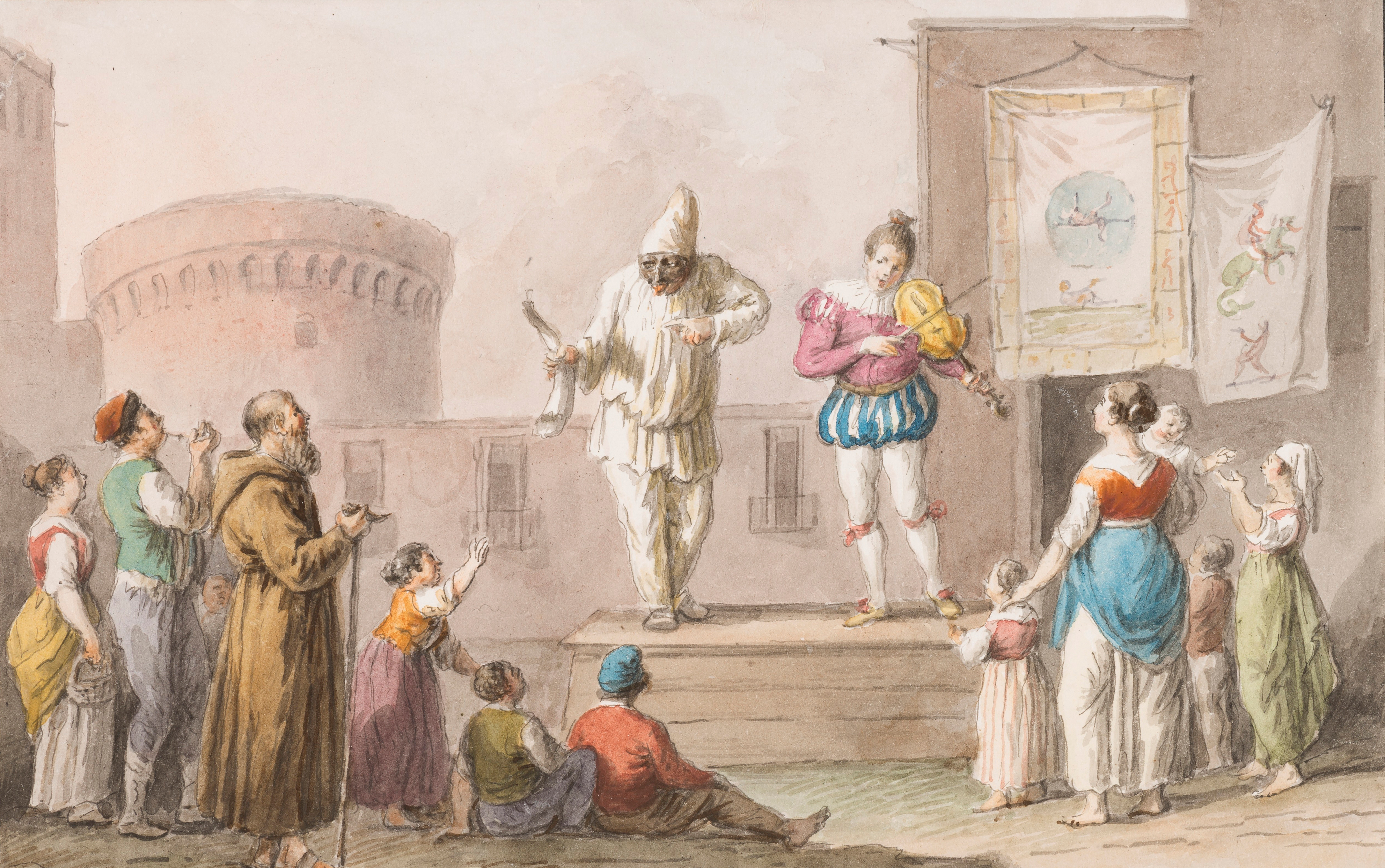 Koreografen Håkan Mayer har iscensatt en dansföreställning till levande renässans- och barockmusik. Handlingen är inspirerad av italienska commedia dell´artes mustiga stil och teatertradition där skådespelarna alltid bär mask. Denna teaterform har ett givet galleri av rollfigurer som ofta parodierar olika yrkesgrupper och människotyper. Följaktligen innehåller föreställningen stora känslor, tvära kast och rappakalja, men också massor av musik, dans, gnagare och överkokt spaghetti.